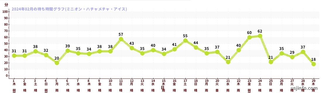 • ミニオン・ハチャメチャ・アイス$B$N(B2024年02月01日のの一日平均待ち時間