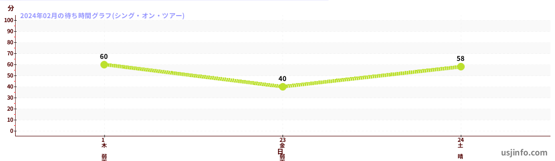• シング・オン・ツアー$B$N(B2024年02月01日のの一日平均待ち時間