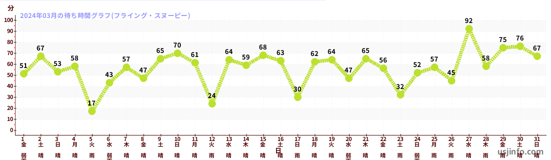 • フライング・スヌーピー$B$N(B2024年03月01日のの一日平均待ち時間