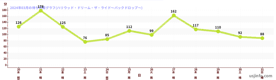 • ハリウッド・ドリーム・ザ・ライド〜バックドロップ〜$B$N(B2024年03月01日のの一日平均待ち時間