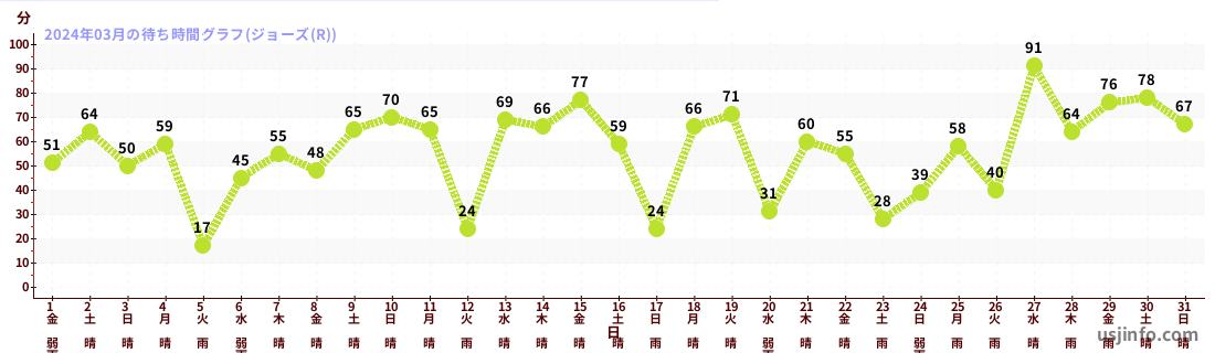 • ジョーズ(R)$B$N(B2024年03月01日のの一日平均待ち時間