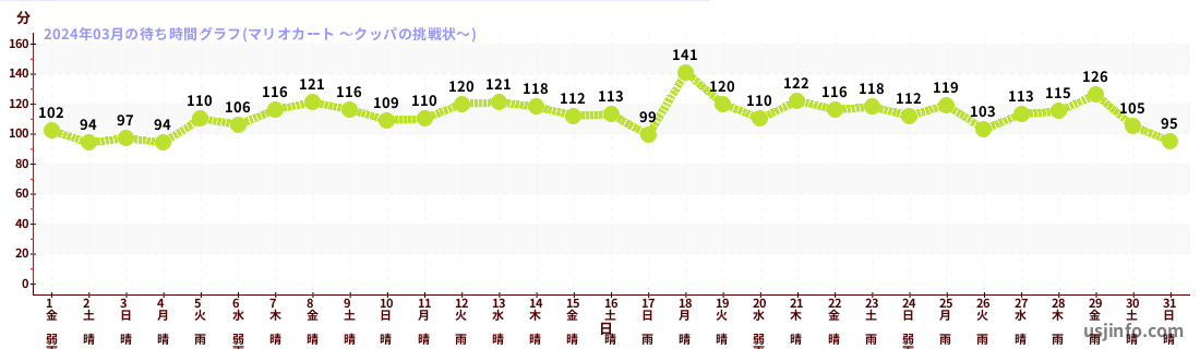 • マリオカート ~クッパの挑戦状~$B$N(B2024年03月01日のの一日平均待ち時間