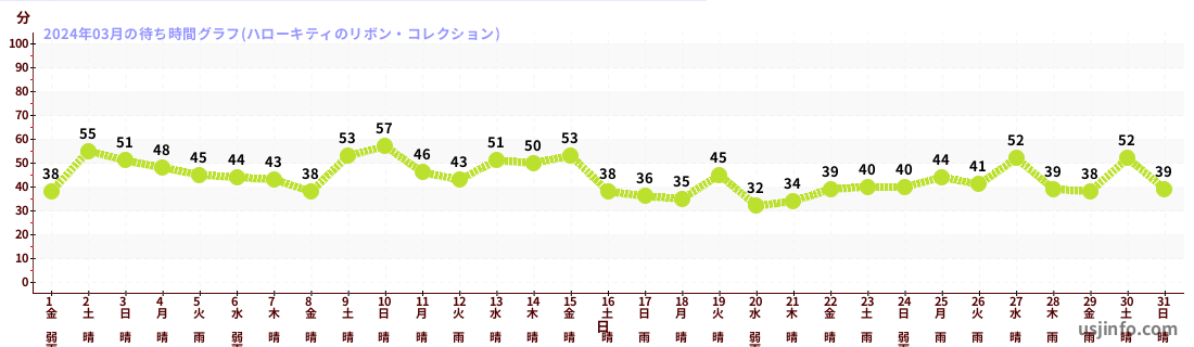 • ハローキティのリボン・コレクション$B$N(B2024年03月01日のの一日平均待ち時間
