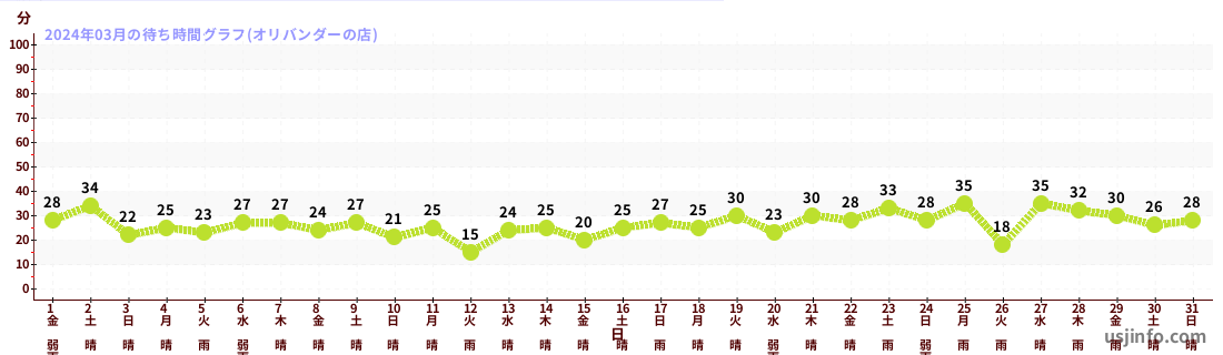 • オリバンダーの店$B$N(B2024年03月01日のの一日平均待ち時間
