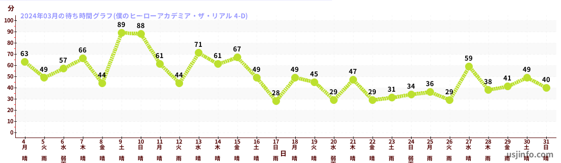 • 僕のヒーローアカデミア・ザ・リアル 4-D$B$N(B2024年03月01日のの一日平均待ち時間