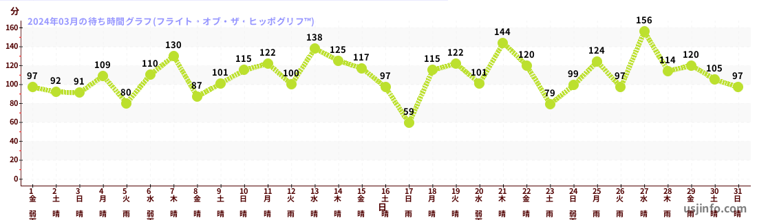 • フライト・オブ・ザ・ヒッポグリフ™$B$N(B2024年03月01日のの一日平均待ち時間