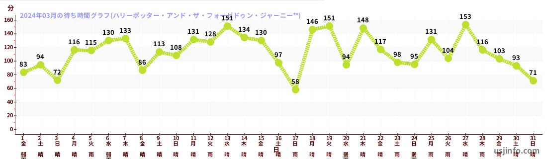 • ハリーポッター・アンド・ザ・フォービドゥン・ジャーニー™$B$N(B2024年03月01日のの一日平均待ち時間