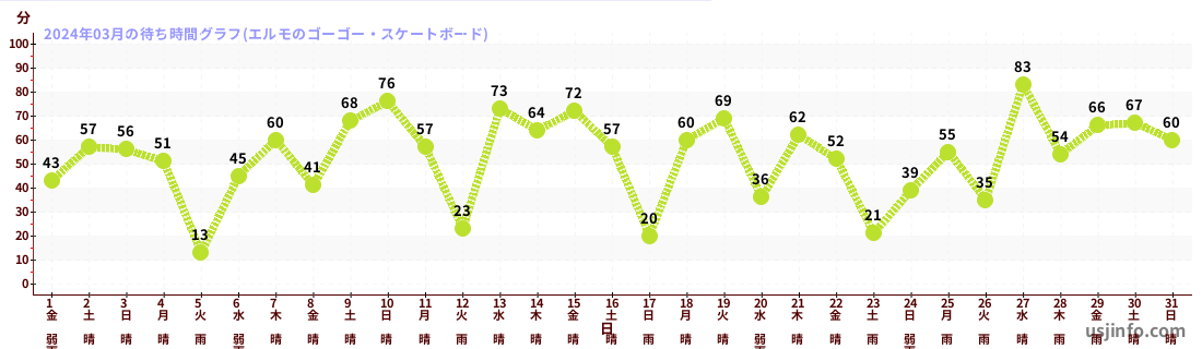 • エルモのゴーゴー・スケートボード$B$N(B2024年03月01日のの一日平均待ち時間