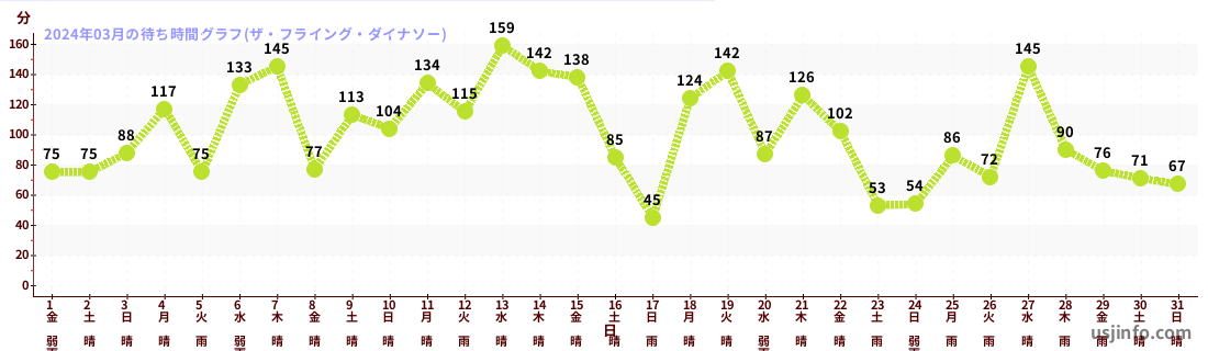 • ザ・フライング・ダイナソー$B$N(B2024年03月01日のの一日平均待ち時間