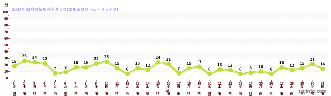 • エルモのリトル・ドライブ$B$N(B2024年03月01日のの一日平均待ち時間