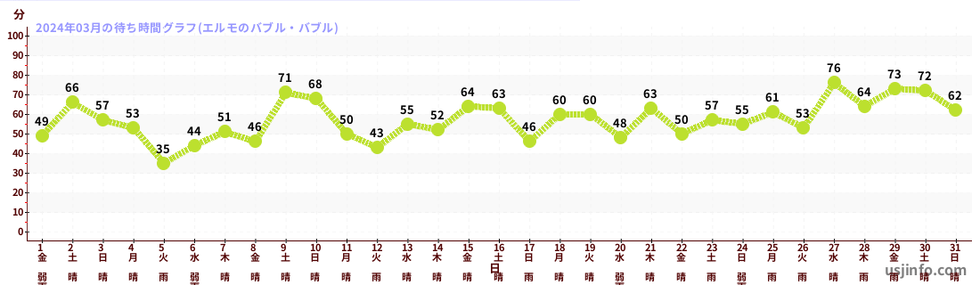 • エルモのバブル・バブル$B$N(B2024年03月01日のの一日平均待ち時間