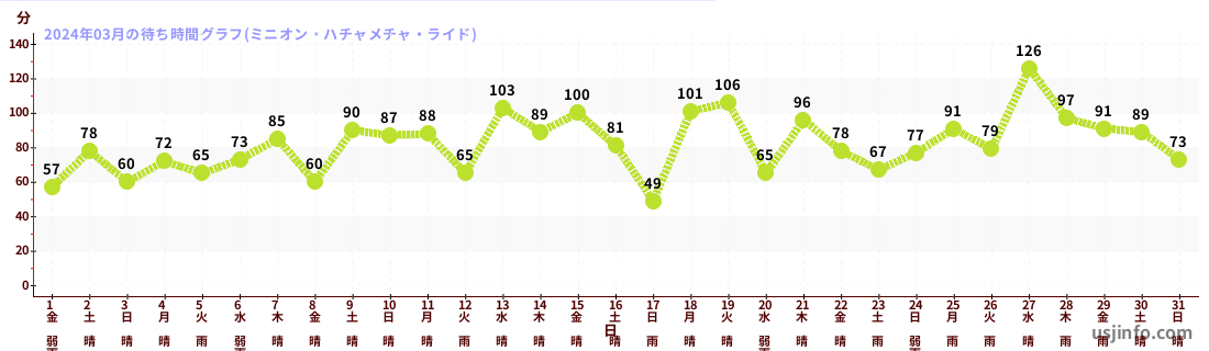 • ミニオン・ハチャメチャ・ライド$B$N(B2024年03月01日のの一日平均待ち時間