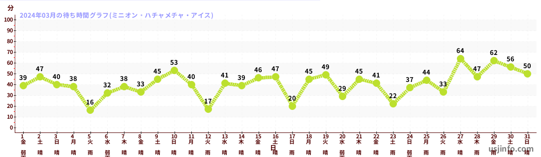 • ミニオン・ハチャメチャ・アイス$B$N(B2024年03月01日のの一日平均待ち時間