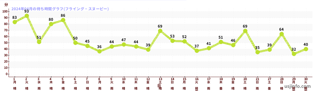 • フライング・スヌーピー$B$N(B2024年04月01日のの一日平均待ち時間