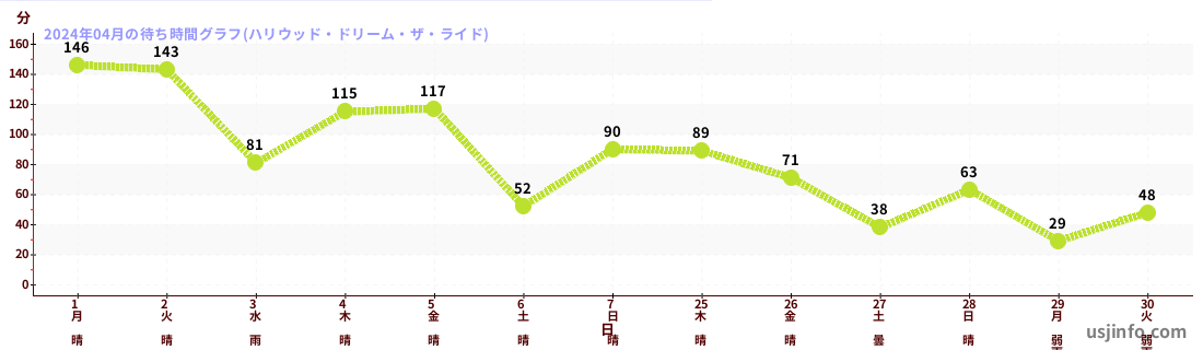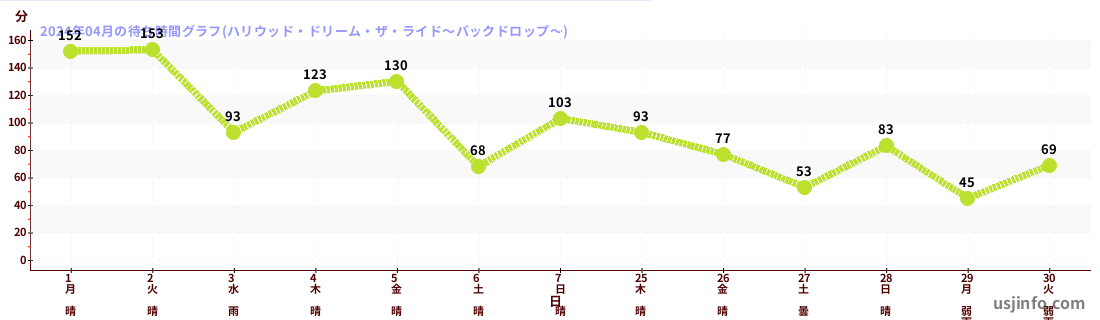 • ハリウッド・ドリーム・ザ・ライド$B$N(B2024年04月01日のの一日平均待ち時間