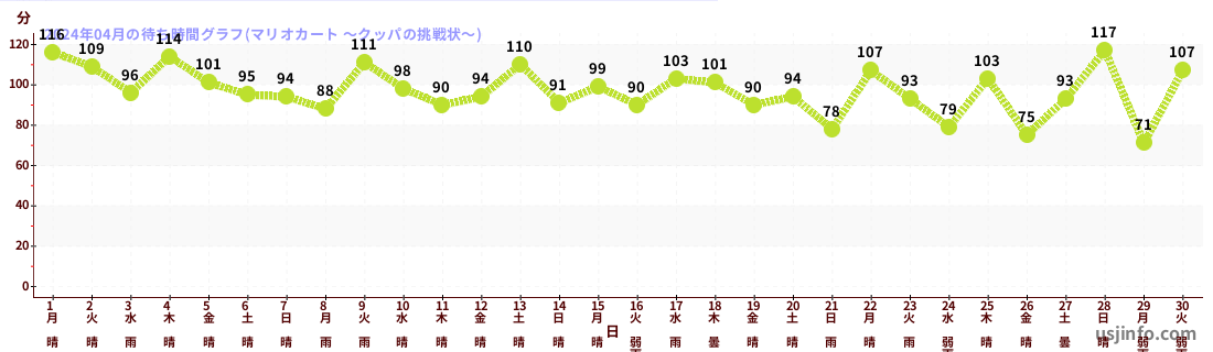 • マリオカート ~クッパの挑戦状~$B$N(B2024年04月01日のの一日平均待ち時間