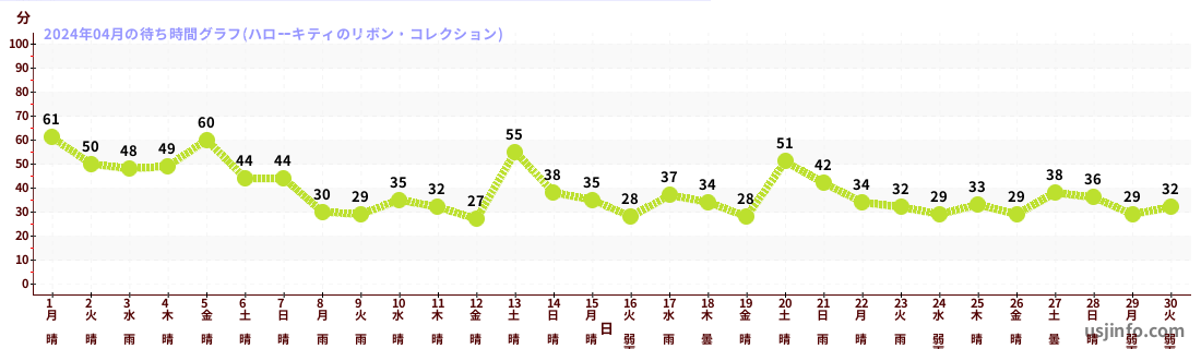 • ハローキティのリボン・コレクション$B$N(B2024年04月01日のの一日平均待ち時間