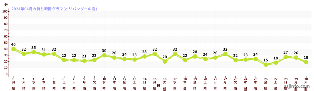 • オリバンダーの店$B$N(B2024年04月01日のの一日平均待ち時間