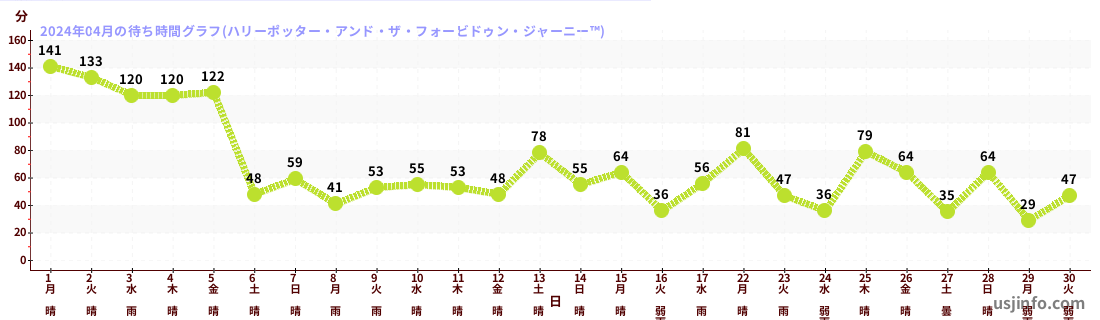 • ハリーポッター・アンド・ザ・フォービドゥン・ジャーニー™$B$N(B2024年04月01日のの一日平均待ち時間