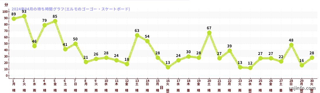 • エルモのゴーゴー・スケートボード$B$N(B2024年04月01日のの一日平均待ち時間