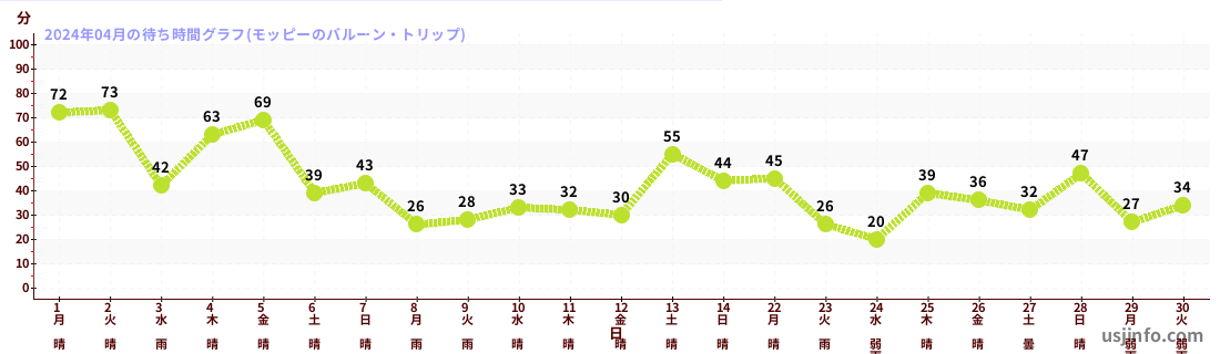 • モッピーのバルーン・トリップ$B$N(B2024年04月01日のの一日平均待ち時間