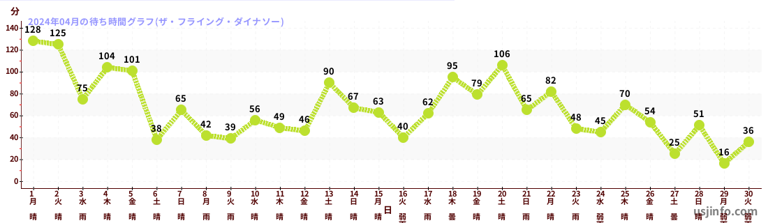 • ザ・フライング・ダイナソー$B$N(B2024年04月01日のの一日平均待ち時間