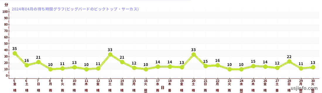 • ビッグバードのビックトップ・サーカス$B$N(B2024年04月01日のの一日平均待ち時間