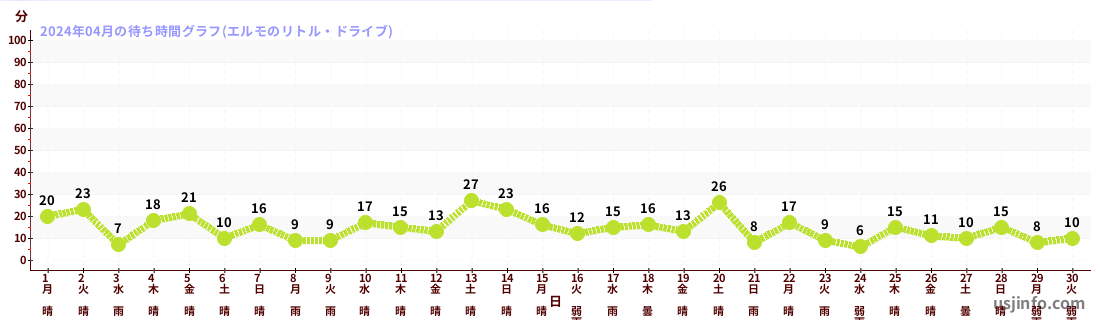 • エルモのリトル・ドライブ$B$N(B2024年04月01日のの一日平均待ち時間