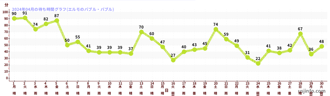 • エルモのバブル・バブル$B$N(B2024年04月01日のの一日平均待ち時間