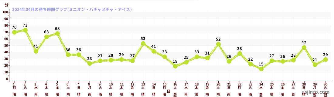 • ミニオン・ハチャメチャ・アイス$B$N(B2024年04月01日のの一日平均待ち時間