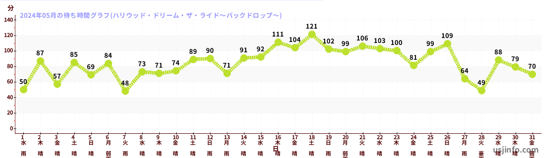• ハリウッド・ドリーム・ザ・ライド〜バックドロップ〜$B$N(B2024年05月01日のの一日平均待ち時間