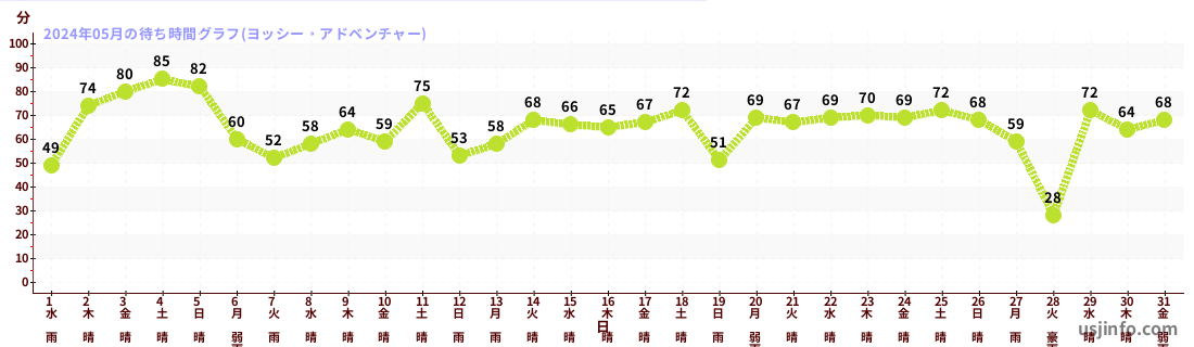 • ヨッシー・アドベンチャー$B$N(B2024年05月01日のの一日平均待ち時間