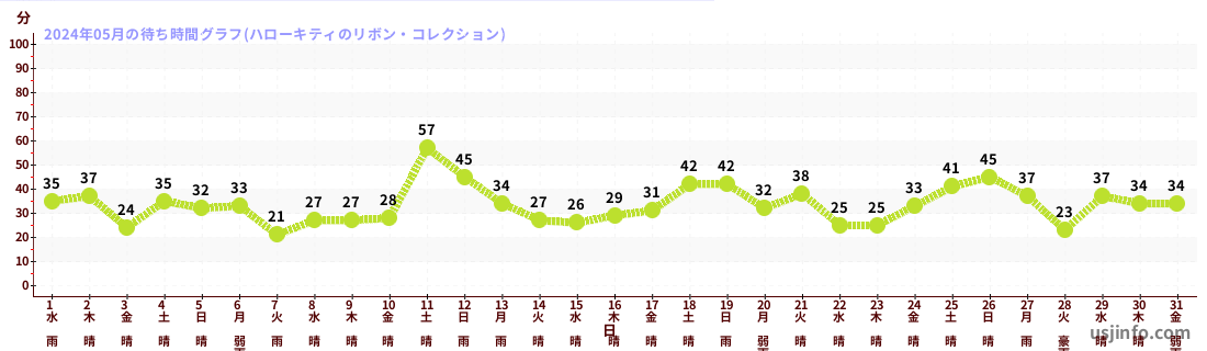 • ハローキティのリボン・コレクション$B$N(B2024年05月01日のの一日平均待ち時間