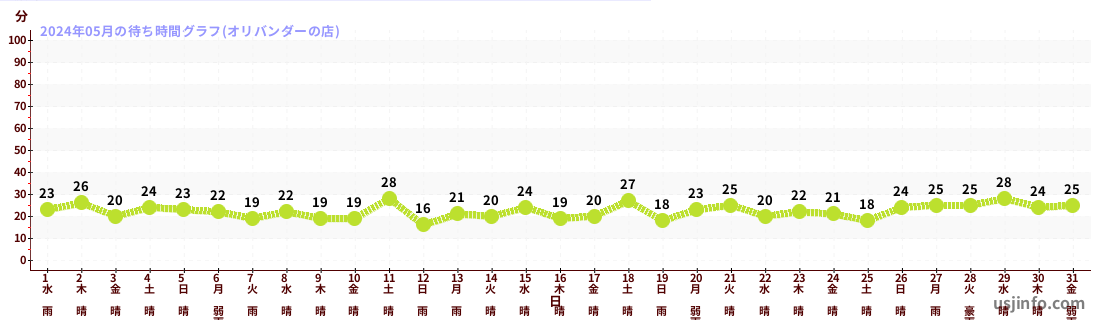 • オリバンダーの店$B$N(B2024年05月01日のの一日平均待ち時間