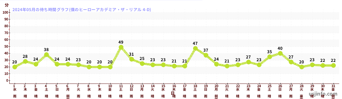 • 僕のヒーローアカデミア・ザ・リアル 4-D$B$N(B2024年05月01日のの一日平均待ち時間