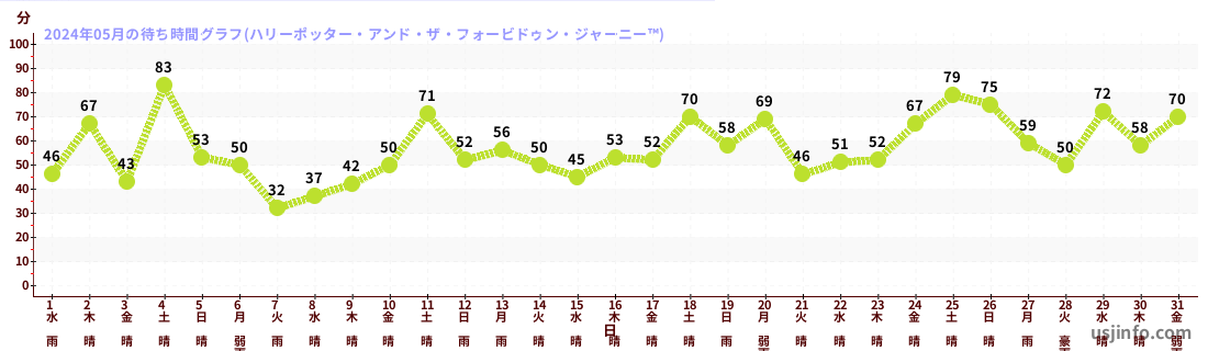 • ハリーポッター・アンド・ザ・フォービドゥン・ジャーニー™$B$N(B2024年05月01日のの一日平均待ち時間
