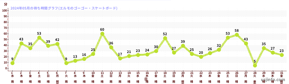 • エルモのゴーゴー・スケートボード$B$N(B2024年05月01日のの一日平均待ち時間