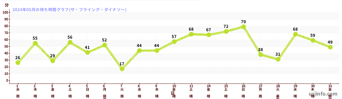 • ザ・フライング・ダイナソー$B$N(B2024年05月01日のの一日平均待ち時間