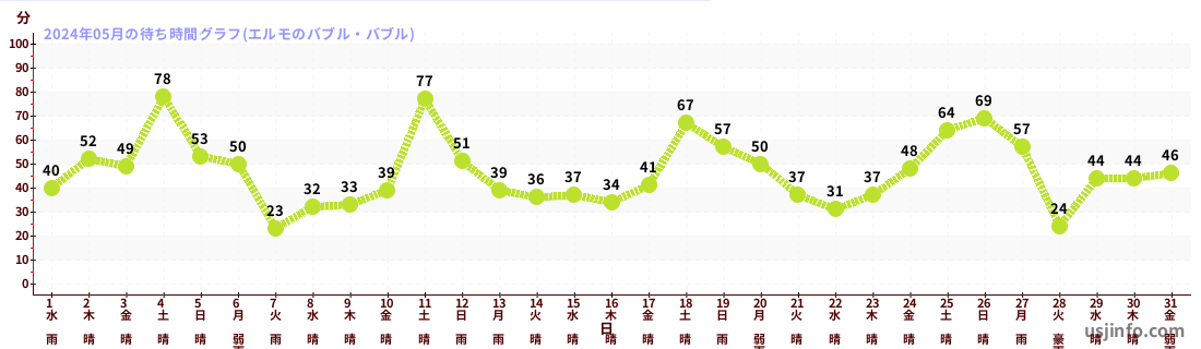 • エルモのバブル・バブル$B$N(B2024年05月01日のの一日平均待ち時間