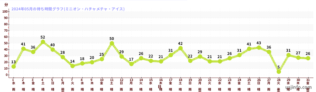 • ミニオン・ハチャメチャ・アイス$B$N(B2024年05月01日のの一日平均待ち時間