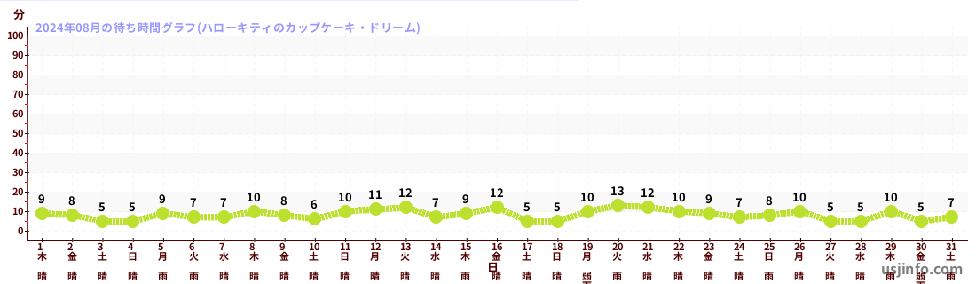 • ハローキティのカップケーキ・ドリーム$B$N(B2024年08月01日のの一日平均待ち時間