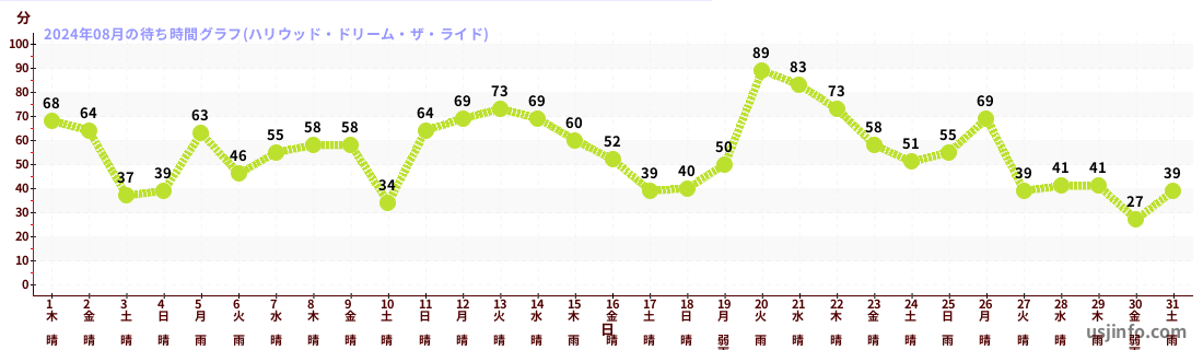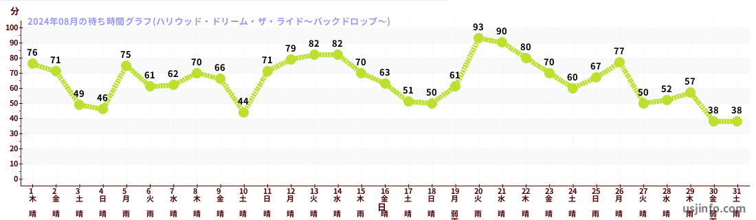 • ハリウッド・ドリーム・ザ・ライド$B$N(B2024年08月01日のの一日平均待ち時間