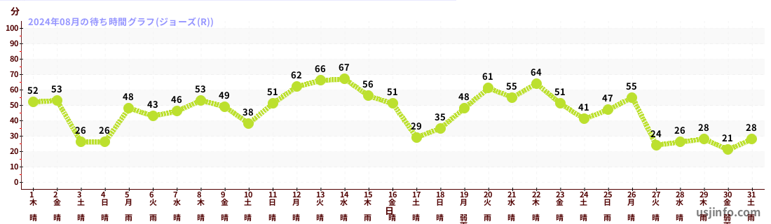 • ジョーズ(R)$B$N(B2024年08月01日のの一日平均待ち時間