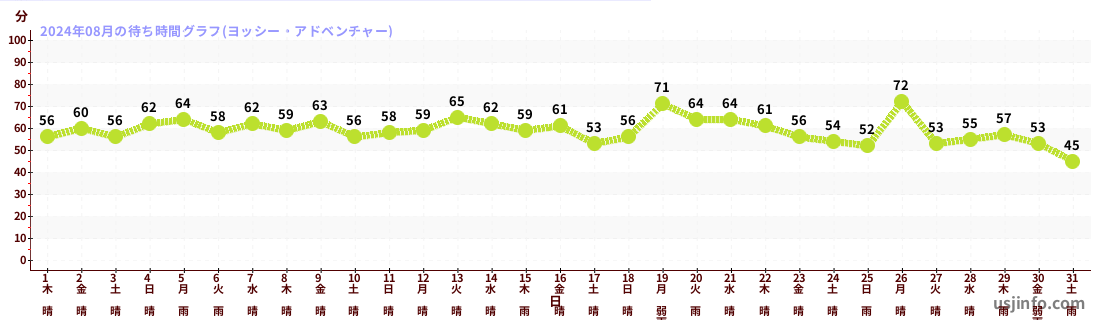 • ヨッシー・アドベンチャー$B$N(B2024年08月01日のの一日平均待ち時間