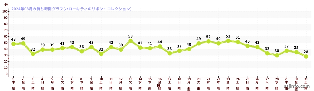 • ハローキティのリボン・コレクション$B$N(B2024年08月01日のの一日平均待ち時間