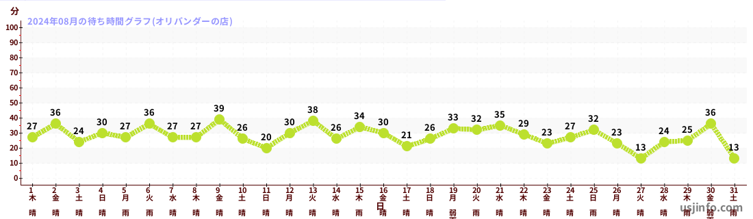 • オリバンダーの店$B$N(B2024年08月01日のの一日平均待ち時間