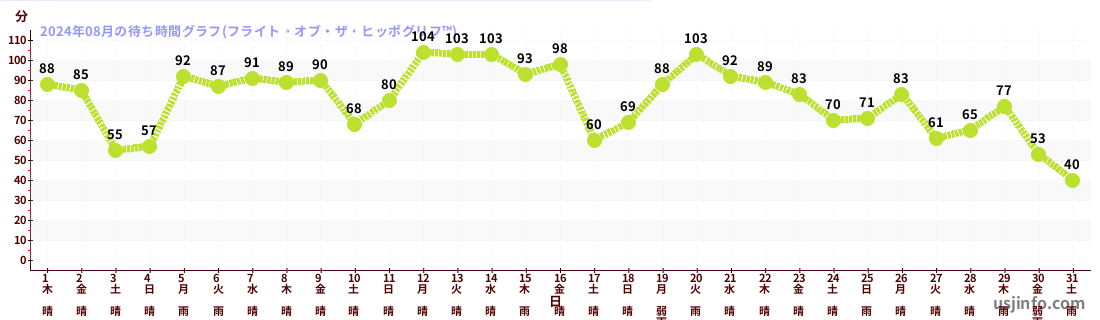 • フライト・オブ・ザ・ヒッポグリフ™$B$N(B2024年08月01日のの一日平均待ち時間