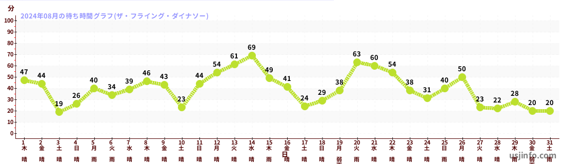 • ザ・フライング・ダイナソー$B$N(B2024年08月01日のの一日平均待ち時間