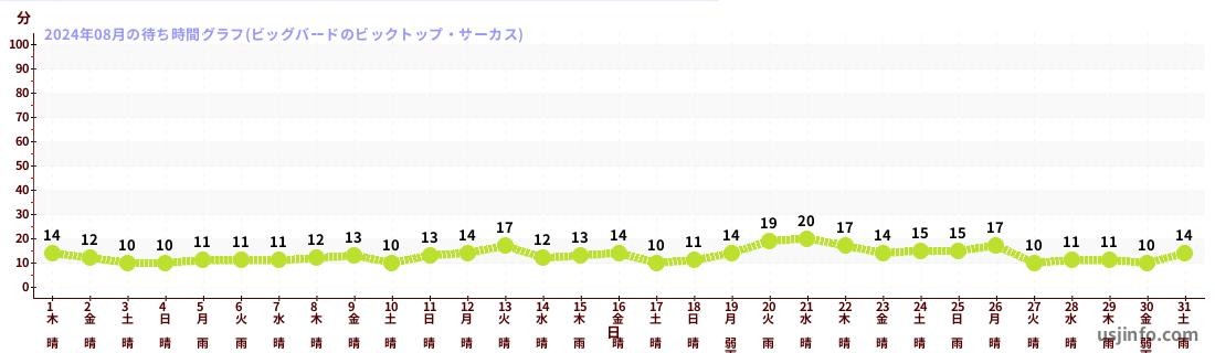 • ビッグバードのビックトップ・サーカス$B$N(B2024年08月01日のの一日平均待ち時間