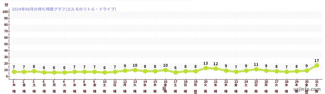 • エルモのリトル・ドライブ$B$N(B2024年08月01日のの一日平均待ち時間